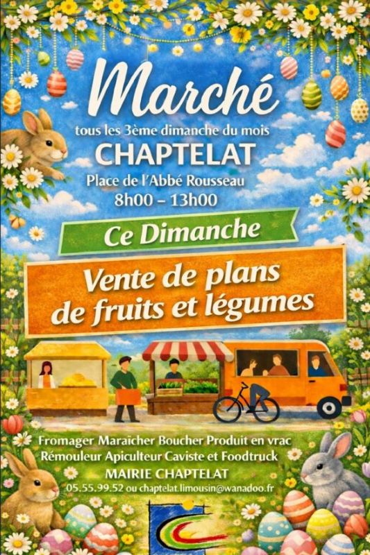 Le dimanche 19 avril 2026 de 8h00 à 13h00 aura lieu notre traditionnel marché.